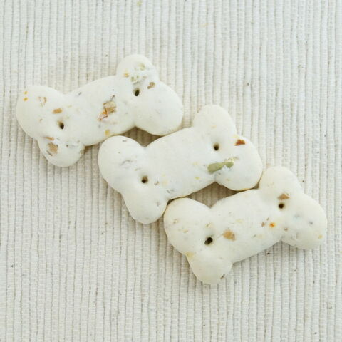 保存料、着色料、発色剤、酸化防止剤を使わずに作りました。3つの野菜とともに、食物繊維やミネラル豊富な全粒粉を使った香ばしいビスケット。食物繊維、オリゴ糖、乳酸菌配合。超小型犬にも食べやすいちっちゃなサイズ。