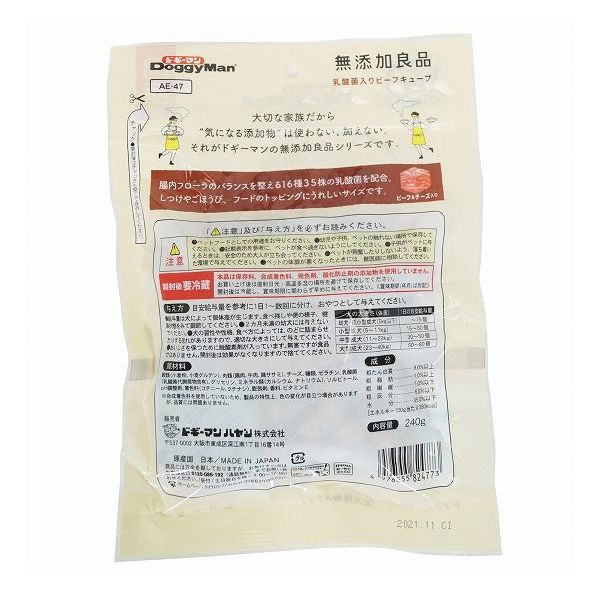 【6個セット】 ドギーマン 無添加良品 乳酸菌入りビーフキューブ 240g x6【送料無料】