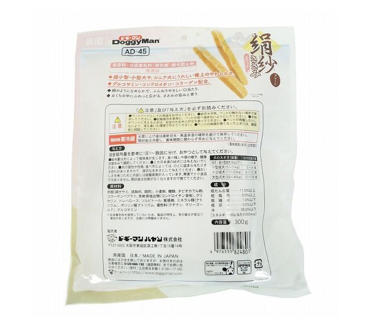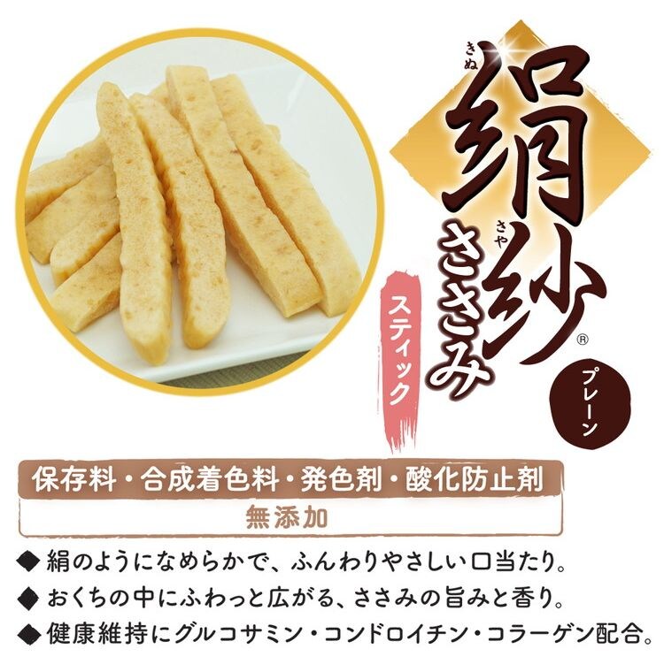 大人気の絹紗に大容量ボリュームパックが新登場。フレッシュな味わいや香りが長持ちする、便利な100g×3袋の分包タイプ。ササミたっぷり、至福の味わい。ふんわりやわらか新食感のごほうびおやつ。絹のようなおいしさをワンちゃんにお届けします。保存料、合成着色料、発色剤、酸化防止剤不使用。