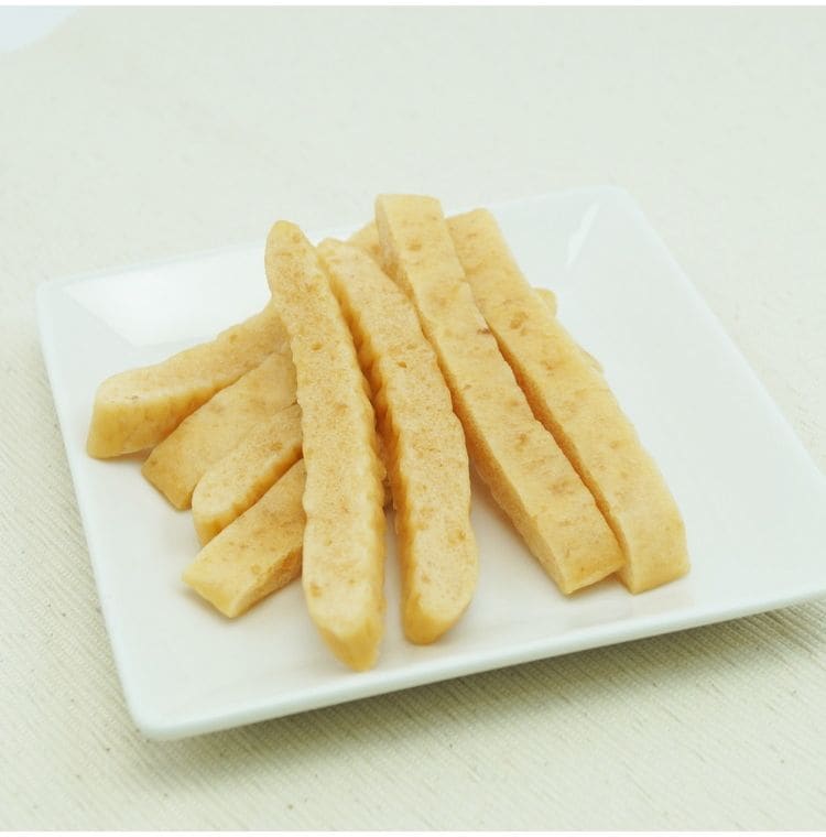 肉類(鶏ササミ、鶏胸肉、鶏肉)、小麦粉、糖類、タピオカでん粉、コラーゲンペプチド、魚軟骨抽出物(コンドロイチン含有)、グリセリン、トレハロース、ソルビトール、膨張剤、ミネラル類(ナトリウム)、ポリリン酸ナトリウム、着色料(クチナシ、マリーゴールド)、グルコサミン
