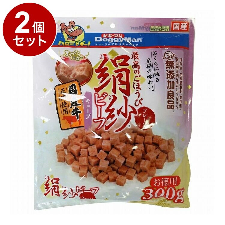 【2個セット】 ドギーマン 絹紗ビーフ キューブ プレーン 300g (100g×3袋)【ポイント10倍】