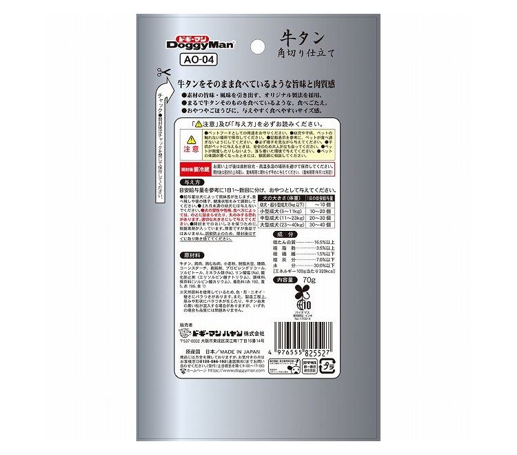 ※天然原料を使用しているため、色・形・ニオイ・硬さにバラつきがあります。また、製造工程上、厚みや形状にバラつきが生じたり、牛タン由来の黒い粒が混入する場合がありますが、いずれの場合も品質には問題ありません。