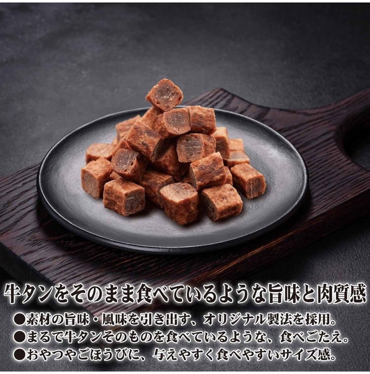 ※天然原料を使用しているため、色・形・ニオイ・硬さにバラつきがあります。また、製造工程上、厚みや形状にバラつきが生じたり、牛タン由来の黒い粒が混入する場合がありますが、いずれの場合も品質には問題ありません。