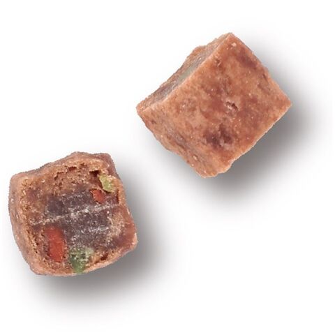 牛タン、鶏肉、鶏むね肉、小麦粉、脱脂大豆、糖類、でん粉類、ほうれん草、にんじん、膨脹剤、プロピレングリコール、ソルビトール、ビタミン類(Na)、リン酸塩(Na)、酸化防止剤(エリソルビン酸Na)、調味料、保存料(ソルビン酸カリウム)、着色料(ベニバナ黄、赤102、黄5、クチナシ青、赤106、青1、黄4、赤40)