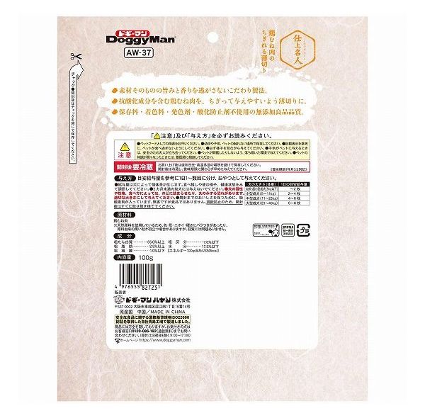 ・鶏むね肉の繊維に沿ってちぎりやすくなっているので、ワンちゃんのお口に合ったサイズで与えることが可能です。