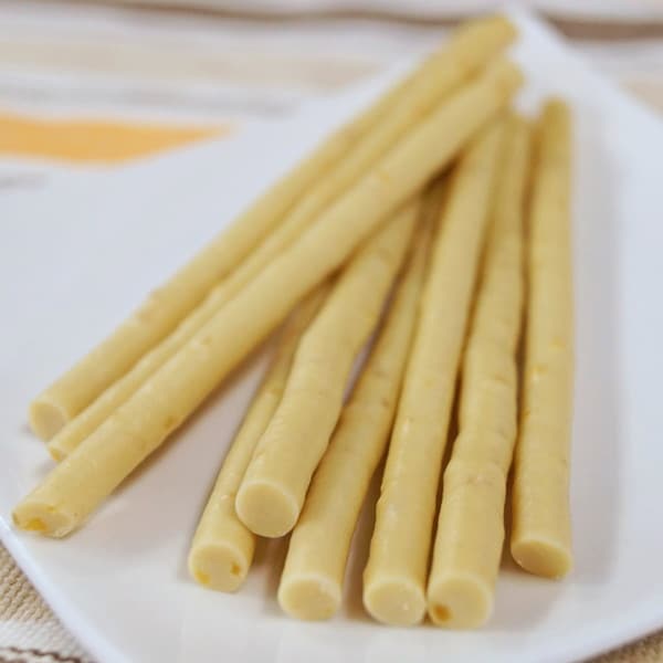 小麦粉、牛皮、パン粉、豚脂、脱脂粉乳、酵母エキス、増粘安定剤(加工でん粉)、ミネラル類(カルシウム、亜鉛、ナトリウム、葉酸、鉄、銅)、ソルビトール、香料、乳化剤、ビタミン類(A、B1、B6、B12、D、E)、保存料(ソルビン酸、デヒドロ酢酸ナトリウム)、プロピレングリコール、着色料(酸化チタン)