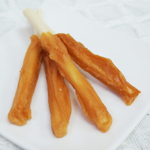 ・牛皮の繊維が絡みつくガムを、巻いたササミの旨みでおいしく噛める。
