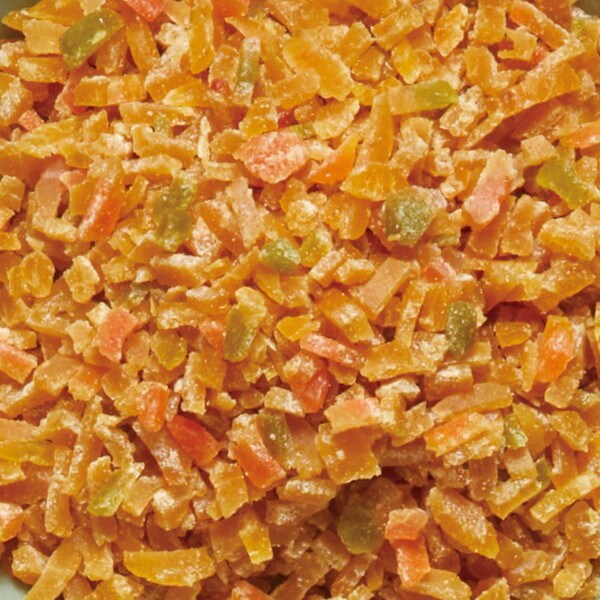 小麦粉、コーンスターチ、鶏肉、にんじん、ほうれん草、ソルビトール、グリセリン、着色料(β-カロテン、赤106、青1)、香料