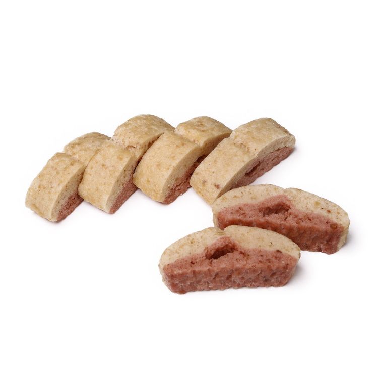 肉類(鶏ササミ、鶏胸肉、鶏肉、鶏レバー)、小麦粉、糖類、タピオカでん粉、ビール酵母、魚介エキス、魚介パウダー、油脂類、グリセリン、ミネラル類(カルシウム、ナトリウム、カリウム、亜鉛、鉄、セレン、銅、ヨウ素)、トレハロース、膨張剤、ソルビトール、ポリリン酸ナトリウム、着色料(クチナシ、カラメル)、ビタミン類(E、B12、B2、D)