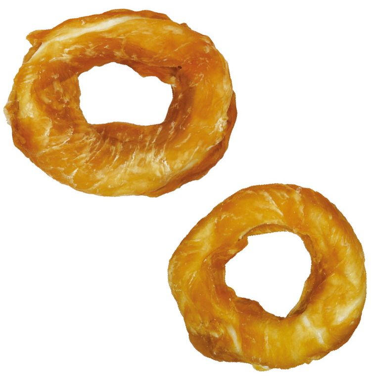ガムが苦手なワンちゃんに、おいしく長く噛めるガムを作りました。ドーナツ状のガムに鶏むね肉を巻き付けて仕上げました。保存料・着色料・発色剤・酸化防止剤不使用。