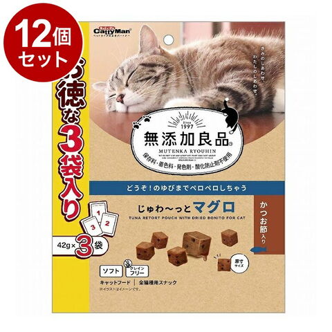 【12個セット】 ドギーマン キャティーマン 無添加良品 じゅわ~っとマグロ かつお節入り 42g×3袋【ポイント10倍】 【送料無料】