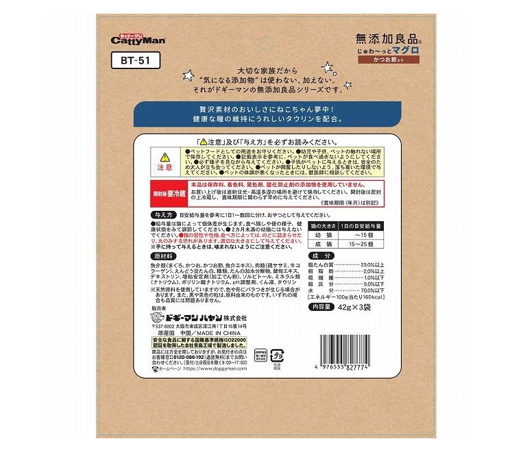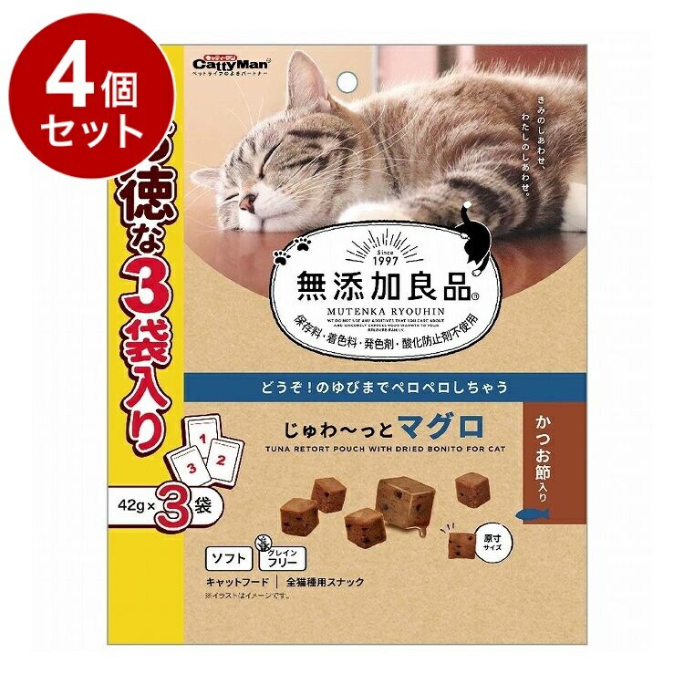 【4個セット】 ドギーマン キャティーマン 無添加良品 じゅわ~っとマグロ かつお節入り 42g×3袋【ポイント10倍】