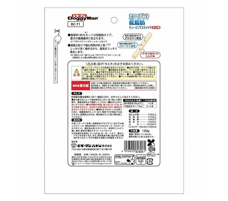 【3個セット】 ドギーマン ホワイデント 低脂肪チューイングスティック ミルク味 130g【ポイント10倍】のレビュー