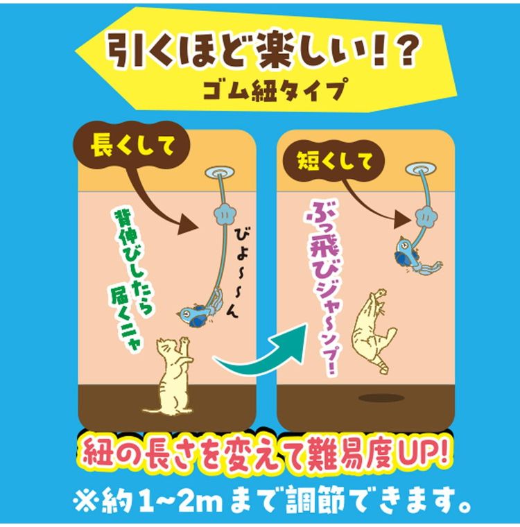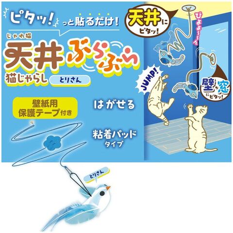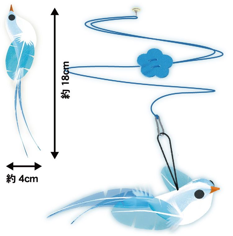 ・青いとりさんがお部屋を飛び回る!ゴム紐で吊るす猫じゃらし。