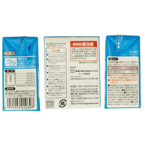 【3個セット】 ドギーマン わんちゃんの国産牛乳 1歳までの成長期用 200ml x3