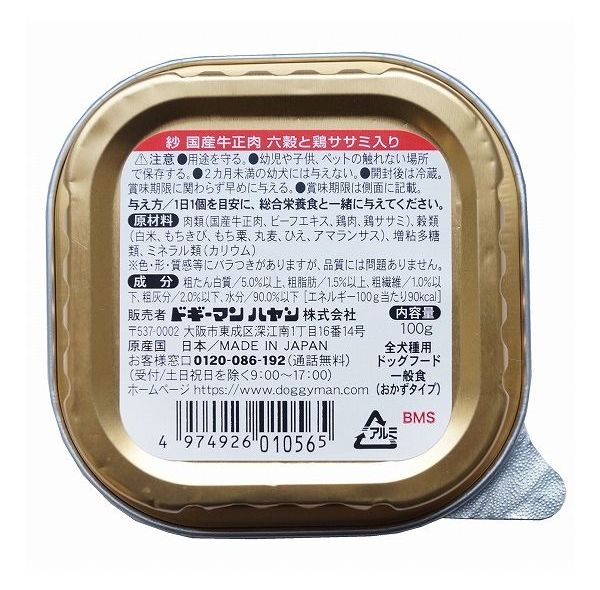 【4個セット】 ドギーマン 紗 国産牛正肉 六穀と鶏ササミ入り 100g x4