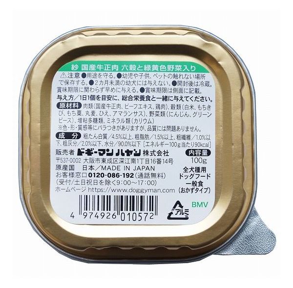 【12個セット】 ドギーマン 紗 国産牛正肉 六穀と緑黄色野菜入り 100g x12【送料無料】