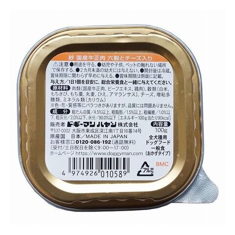 【12個セット】 ドギーマン 紗 国産牛正肉 六穀とチーズ入り 100g x12【送料無料】