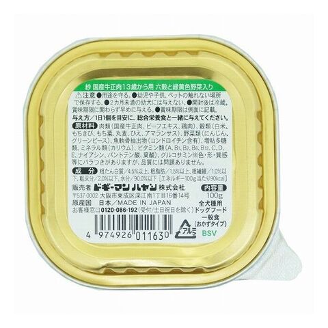 【12個セット】 ドギーマン 紗 国産牛正肉 13歳から用 六穀と緑黄色野菜入り 100g x12【送料無料】