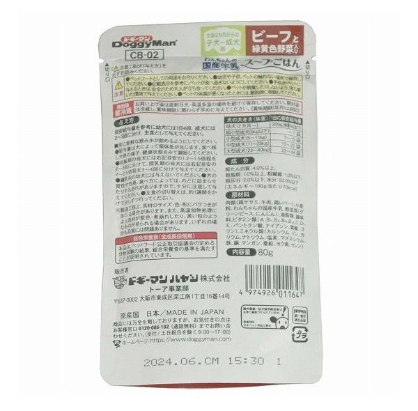 【60個セット】 ドギーマン わんちゃんの国産牛乳スープごはん ビーフと緑黄色野菜入り 80g x60【送料無料】