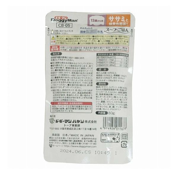 【6個セット】 ドギーマン 13歳から用 わんちゃんの国産低脂肪牛乳スープごはん ササミと緑黄色野菜入り 80g x6