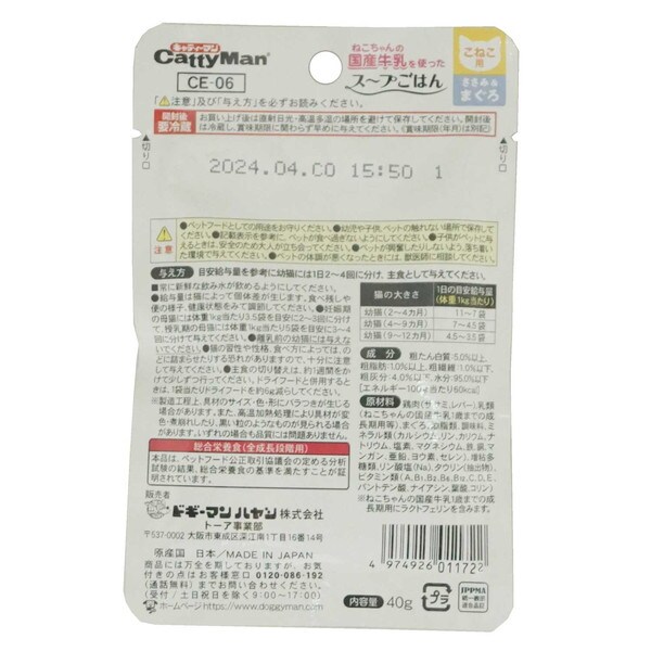 【12個セット】 キャティーマン 猫ちゃんの国産牛乳を使ったスープごはん ささみ&まぐろ こねこ用 40g x12