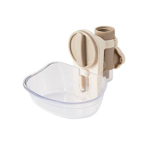 らくらく飲めて、らくらく洗えるケージ取り付け式給水器です。たっぷり飲める幅広皿で、透明で中が見えやすく、お皿だけ外してサッと洗うことができます。市販の500mlペットボトルが使用できます。漏れにくい止水コック付きで安心です。