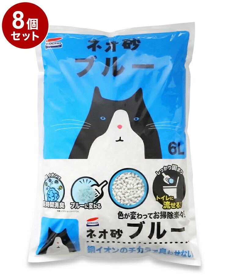 【8個セット】 コーチョー 猫砂 ネオ砂 ブルー 6L 日本製 消臭 脱臭 固まる 流せる トイレに流せる 燃やせる ねこ砂 ねこトイレ トイレ用品 猫 猫用品【送料無料】