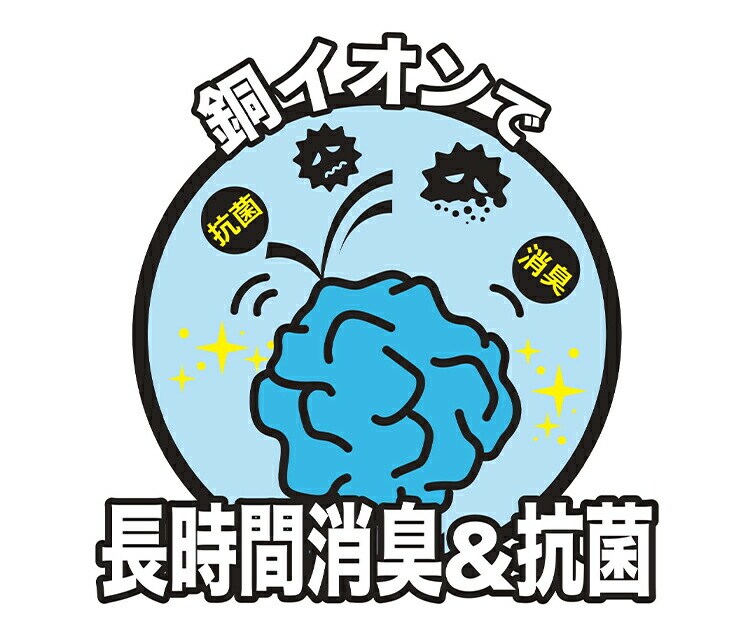 銅イオン入りなので長時間消臭し、空間を快適に保ちます。