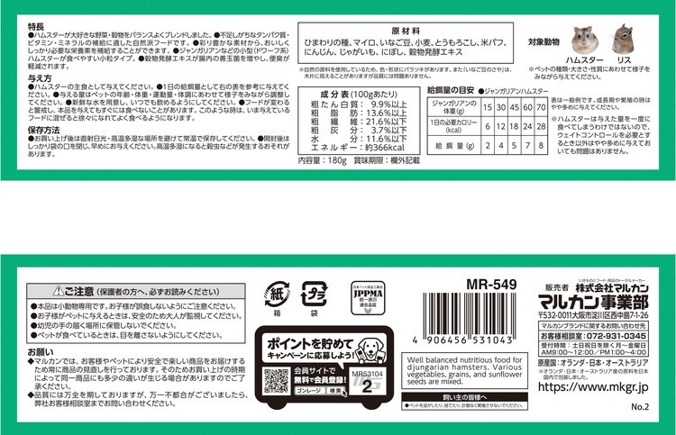 【6個セット】 マルカン ジャンガリアンのミックスフード 180g【ポイント10倍】 【送料無料】