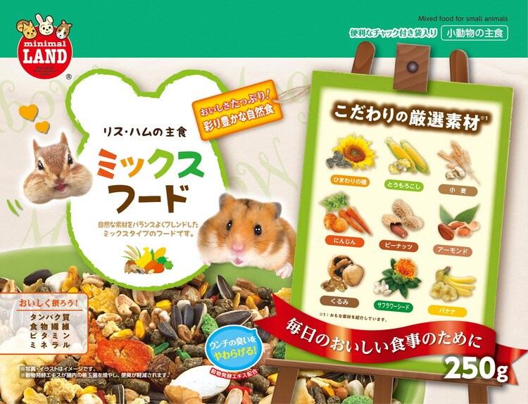 ・リス、ハムスターが大好物のフルーツや野菜、穀物をバランスよくブレンドしました。