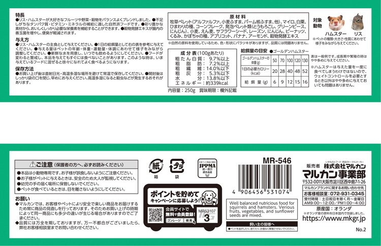 【6個セット】 マルカン リス・ハムの主食ミックスフー ド 250g【ポイント10倍】 【送料無料】