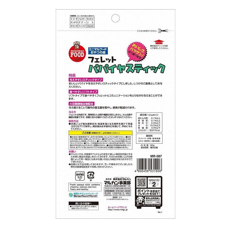 【6個セット】 マルカン フェレットのパパイヤスティック 90g【ポイント10倍】 【送料無料】
