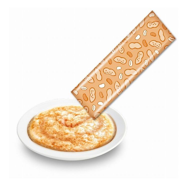 肉類(鶏ササミ)、蛋白加水分解物、糖類(オリゴ糖)、植物性油脂、食物繊維、α-リノレン酸、ミネラル類(塩化ナトリウム)、増粘安定剤(加工デンプン・増粘多糖類)、香料(ピーナッツフレーバー)、酸化防止剤(ビタミンE)、着色料(β-カロテン)