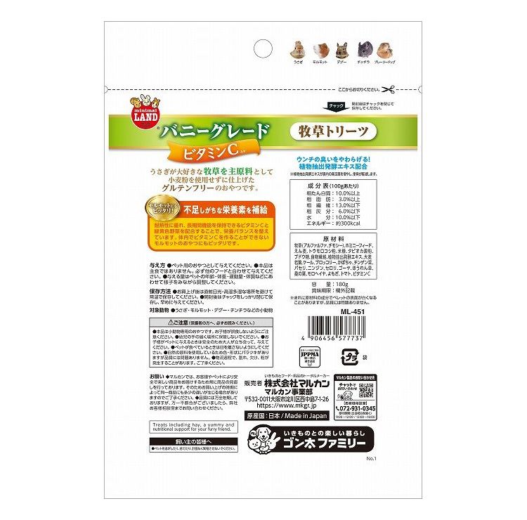 【12個セット】 マルカン バニーグレード 牧草トリーツ ビタミンC入り 180g【ポイント10倍】 【送料無料】