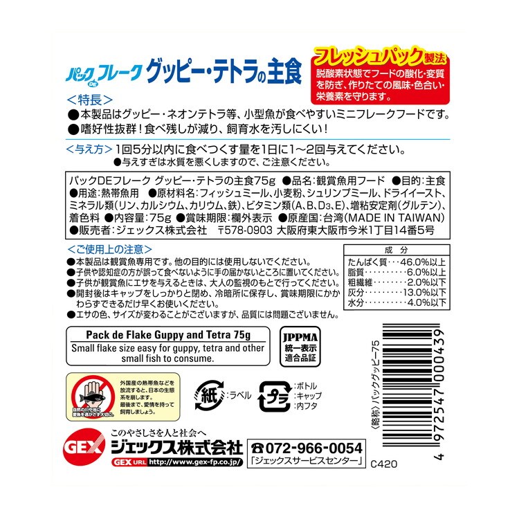 【12個セット】 GEX ジェックス パックDEフレーク グッピー・テトラの主食 75g【ポイント10倍】 【送料無料】