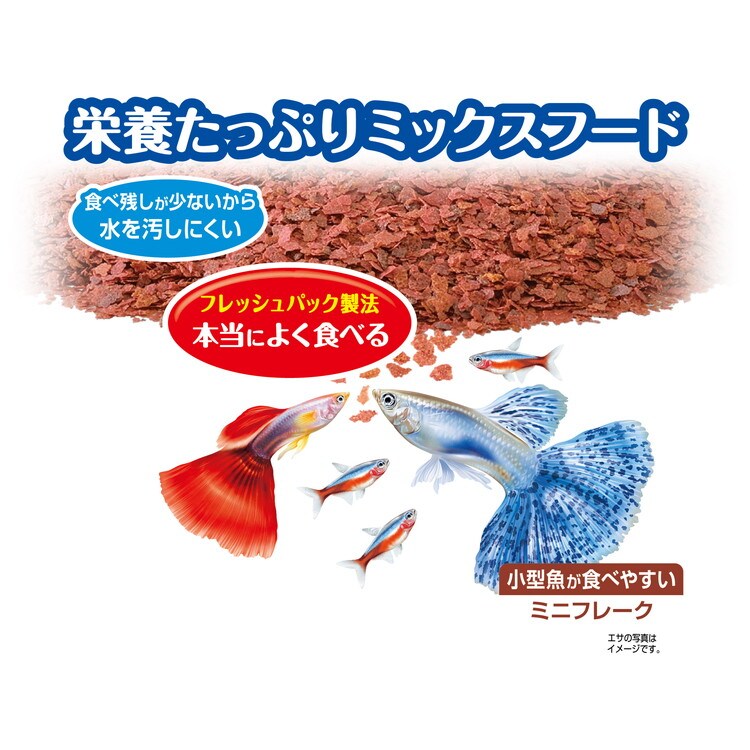 ・本製品はグッピー、ネオンテトラ等、小型魚が食べやすいミニフレークです。