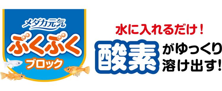 ・水の中に入れるだけで、水中に酸素が溶け出し、メダカの住みやすい環境をつくります。