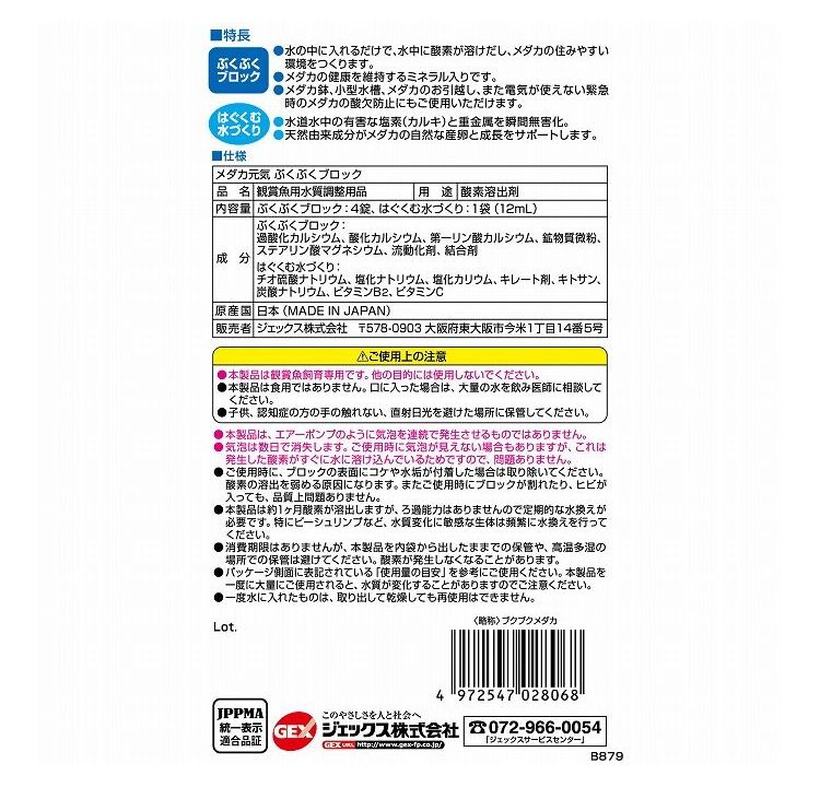 【4個セット】 GEX ジェックス メダカ元気 ぶくぶくブロック【ポイント10倍】