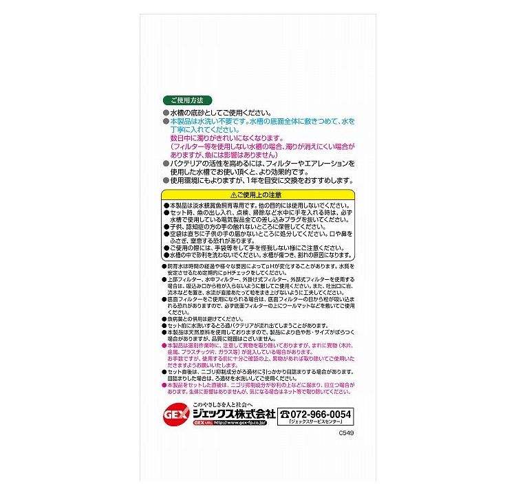 ・本製品は水洗い不要です。水槽の底面全体に敷き詰めて、水を丁寧に入れてください。