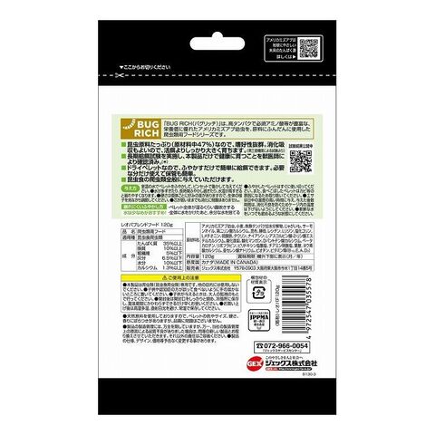 ・昆虫原料たっぷり(原材料中47%)なので、嗜好性抜群。消化吸収もよいので、活餌よりしっかり大きく育ちます。