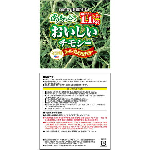 香りにこだわり、茶色い葉が少なく競走馬にも使用される最高級グレードの一番刈りチモシーを厳選して国内で袋詰めしています。