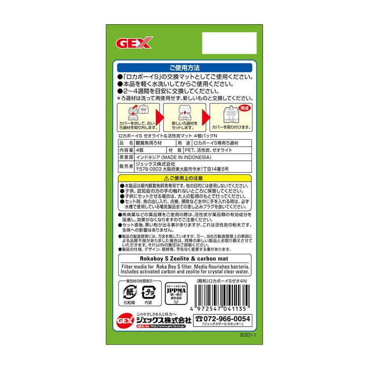【6個セット】 GEX ジェックス ロカボーイS ゼオライト&活性炭マット-N お徳用4個パック【ポイント10倍】 【送料無料】