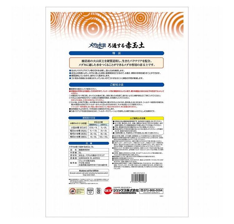 鹿沼産火山灰土を硬質造粒し、生きたバクテリアを配合したメダカに適した水を作ることができるメダカ専用赤玉土です。