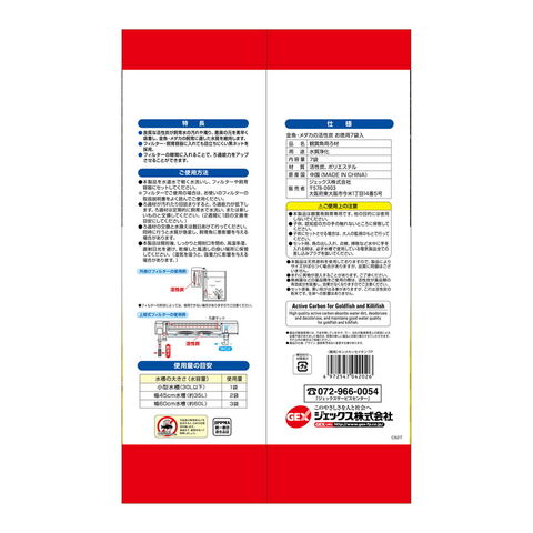 ・良質な活性炭が飼育水の汚れや濁り、悪臭の元を素早く吸着し、金魚・メダカの飼育に適した水質を維持します。