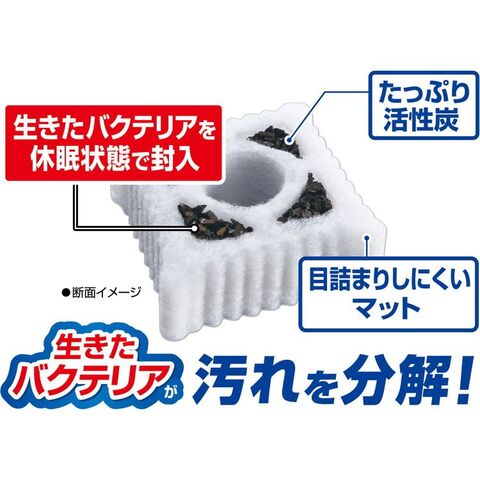 生きたバクテリアを休眠状態で封入。活性炭もたっぷり。目詰まりしにロカボーイS用交換用マットです。白ニゴリ・悪臭も吸着。汚れをすばやく分解し、キレイな水に。