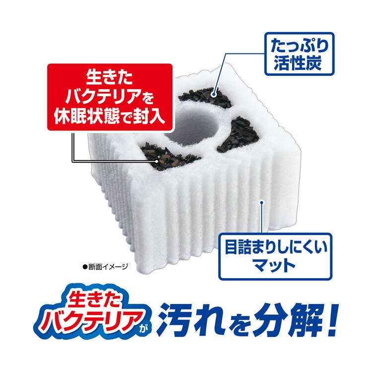 生きたバクテリアを休眠状態で封入。活性炭もたっぷり。目詰まりしにロカボーイM用交換用マットです。白ニゴリ・悪臭も吸着。汚れをすばやく分解し、キレイな水に。