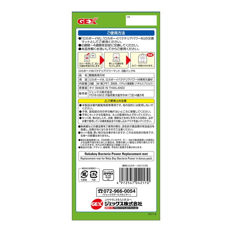 【2個セット】 GEX ジェックス ロカボーイM バクテリアパワーマット-N お徳用3個パック【ポイント10倍】