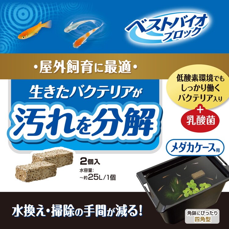 ・水容量約25L以下につき1個を目安に、メダカケースに沈めてご使用ください。使用量が多いほど分解効果は高くなりますが、多く使用する場合は、水質の変化に留意しながらご使用ください。