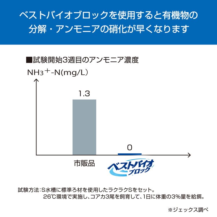 ・有機物の汚れ(フンや残餌)の分解だけではなく、魚に有害なアンモニア・亜硝酸の無害化まで行います。